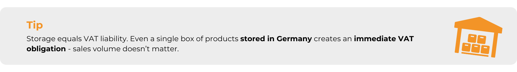 Many sellers still operate under the misconception that VAT obligations arise only after reaching a certain annual turnover threshold. This may have been the case for distance selling under older EU rules, but it does not apply to inventory stored abroad. In the case of Amazon FBA, there are no thresholds, no exemptions, and no waiting periods. The obligation arises instantly when goods enter Germany.