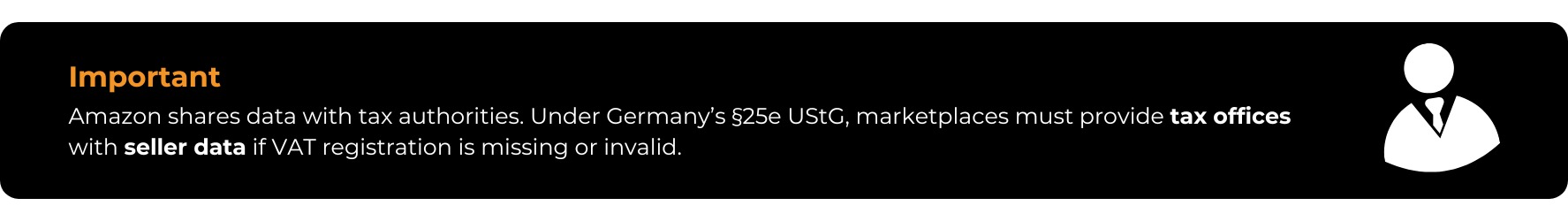 This legal framework gives Amazon a direct incentive to enforce compliance rigorously. The company has developed internal compliance tools and data-sharing mechanisms to ensure that every seller using its FBA warehouses in Germany is duly registered. In practice, this means that Amazon continuously monitors the tax status of all its sellers, cross-checks their VAT numbers against official databases, and cooperates with the German tax authorities when irregularities are detected.