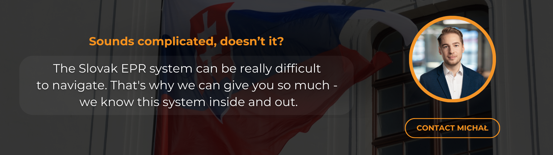 There is a threshold here: if you place less than 100 kg of non-packaging products on the Slovak market per year, you can fulfil your obligations individually instead of through a PRO. But that doesn’t mean you have no obligations — you still need to keep records and ensure the products are properly managed. Most businesses eventually join a PRO anyway, simply because it’s easier. But knowing this category exists helps avoid those “wait, I didn’t realize this counted as EPR” surprises later.