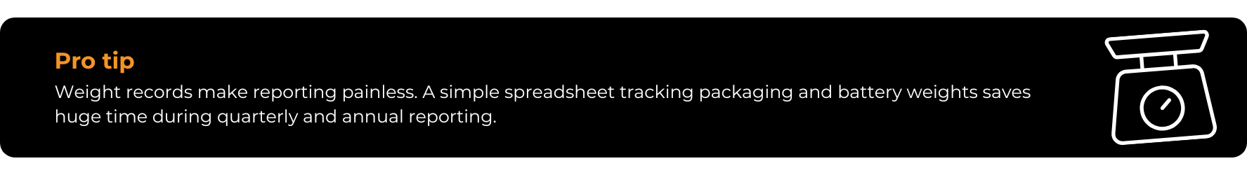 In short, your reporting data will always be based on weight for packaging, WEEE and batteries — with batteries requiring correct categorisation into portable, industrial or automotive — while SUP and grave candle reporting follow their own pathways depending on the product type.