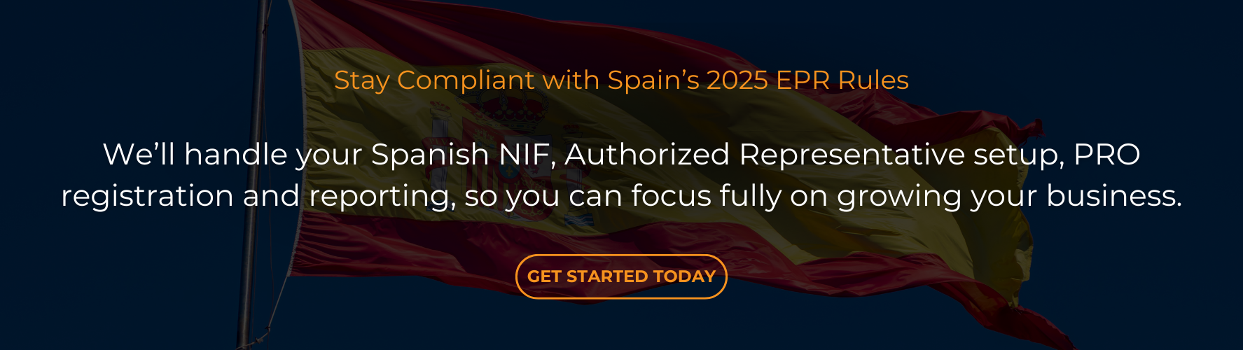 For businesses not established in Spain, there’s one more important step. You can’t fulfil EPR obligations directly with the authorities, because foreign companies aren’t allowed to register or report on their own. Instead, you must appoint an Authorized Representative, a Spanish entity that acts on your behalf for all EPR duties — registration, reporting, fee payments, communication with authorities, everything. Without an Authorized Representative, you can’t obtain your required EPR registration numbers, and without those numbers you’re not legally permitted to place products on the Spanish market.